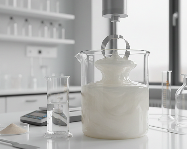 This creates a strong gel network before the main formulation stage.